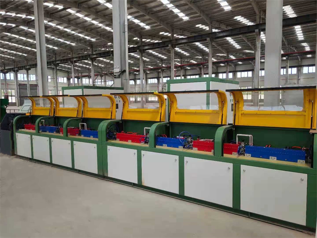 金迪機(jī)械螺紋鋼筋冷軋機(jī)工藝流程:立式放線,除銹減徑,成型軋機(jī),中頻加熱,飛剪切斷,智能反轉(zhuǎn)料架,立式收線,打包入庫(kù)。采用中控操作電腦觸摸屏控制,具有工藝先進(jìn),結(jié)構(gòu)緊湊,操作方便,精度高,產(chǎn)量大,故障率低,占地面積小等特點(diǎn)。生產(chǎn)φ6-φ12高延性冷軋兩肋鋼筋,CRB600H符合新標(biāo)準(zhǔn),適用于高鐵、隧道、橋梁、環(huán)境建設(shè)等。